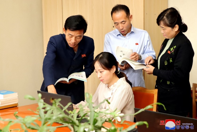 기자, 편집원들이 교종별에 따르는 교과서와 참고서를 당의 교육정책에 립각하여 질적으로 집필완성하는데 지혜와 열정을 바쳐가고있다.