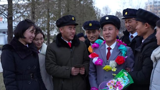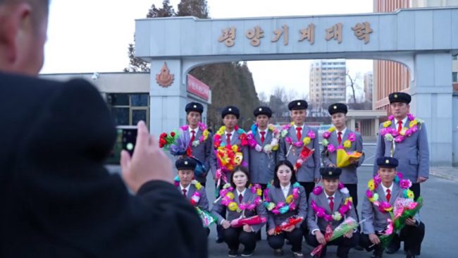 Eleven graduates of Pyongyang University of Mechanical Engineering volunteered to the construction site of Jonwi Street, cherishing deep in their hearts the profound trust and expectation of the Party Central Committee which entrusted the construction of Jonwi Street exclusively to the young people.