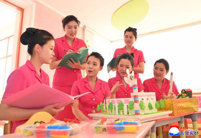 The teachers of Pyongyang Orphanage devote their all wisdom and zeal to bringing up the orphans to be reliable pillars of the country, with the great pride of working at the honourable worksite.
